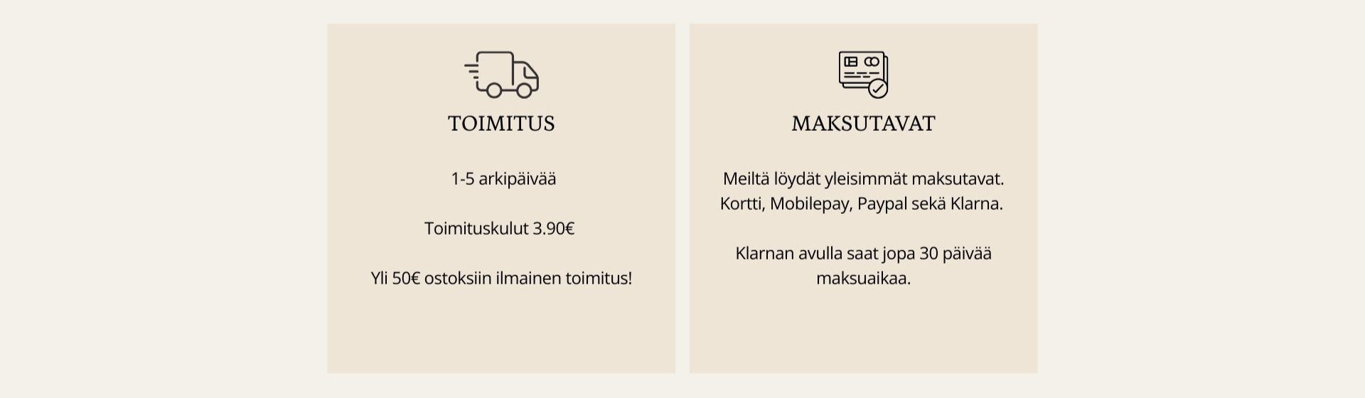 Jokainen tuote on suunniteltu ja valmistettu käsityönä omassa pienessä korupajassani. Koska jokainen tuote tehdään alusta loppuun käsin, on myös jokainen koru aina uniikki. Lisäksi tuotteet on tehty laadukkaista materiaaleista, joiden hankkimisessa suosin kotimaisia yrityksiä.