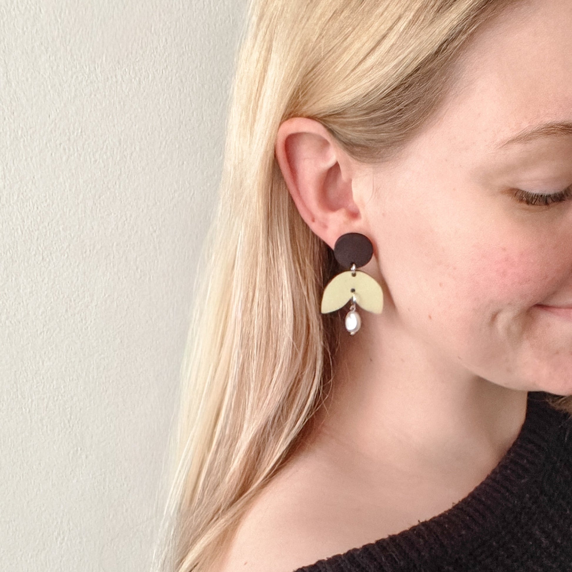 Nämä upeat puiset korvakorut ovat 100% käsintehtyjä. Mustan ja vaaleanvihreän sävyt muodostaa tyylikkään ja harmonisen yhdistelmän, joka sopii hyvin niin arkeen kuin juhlaan. Kevyt puumateriaali tekee koruista miellyttävät käyttää koko päivän ajan.