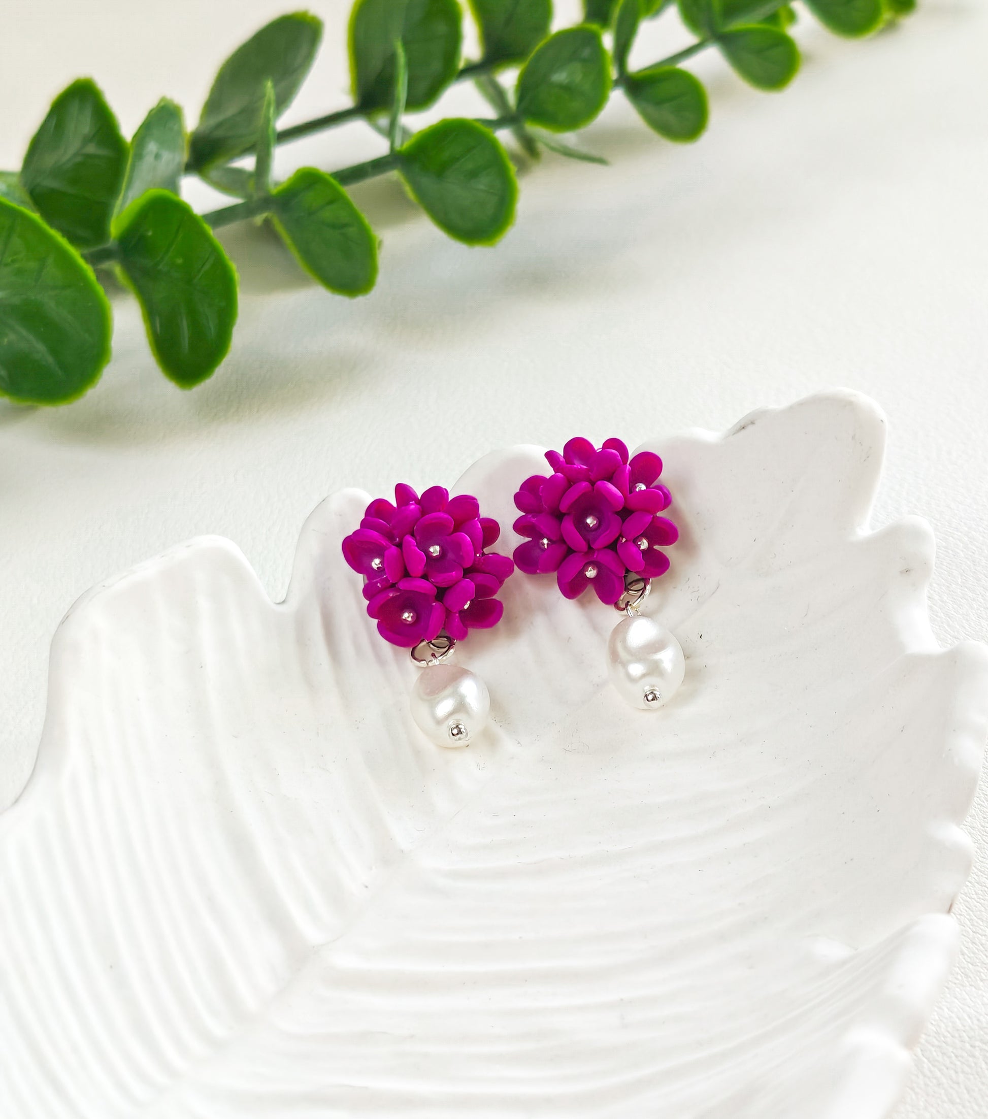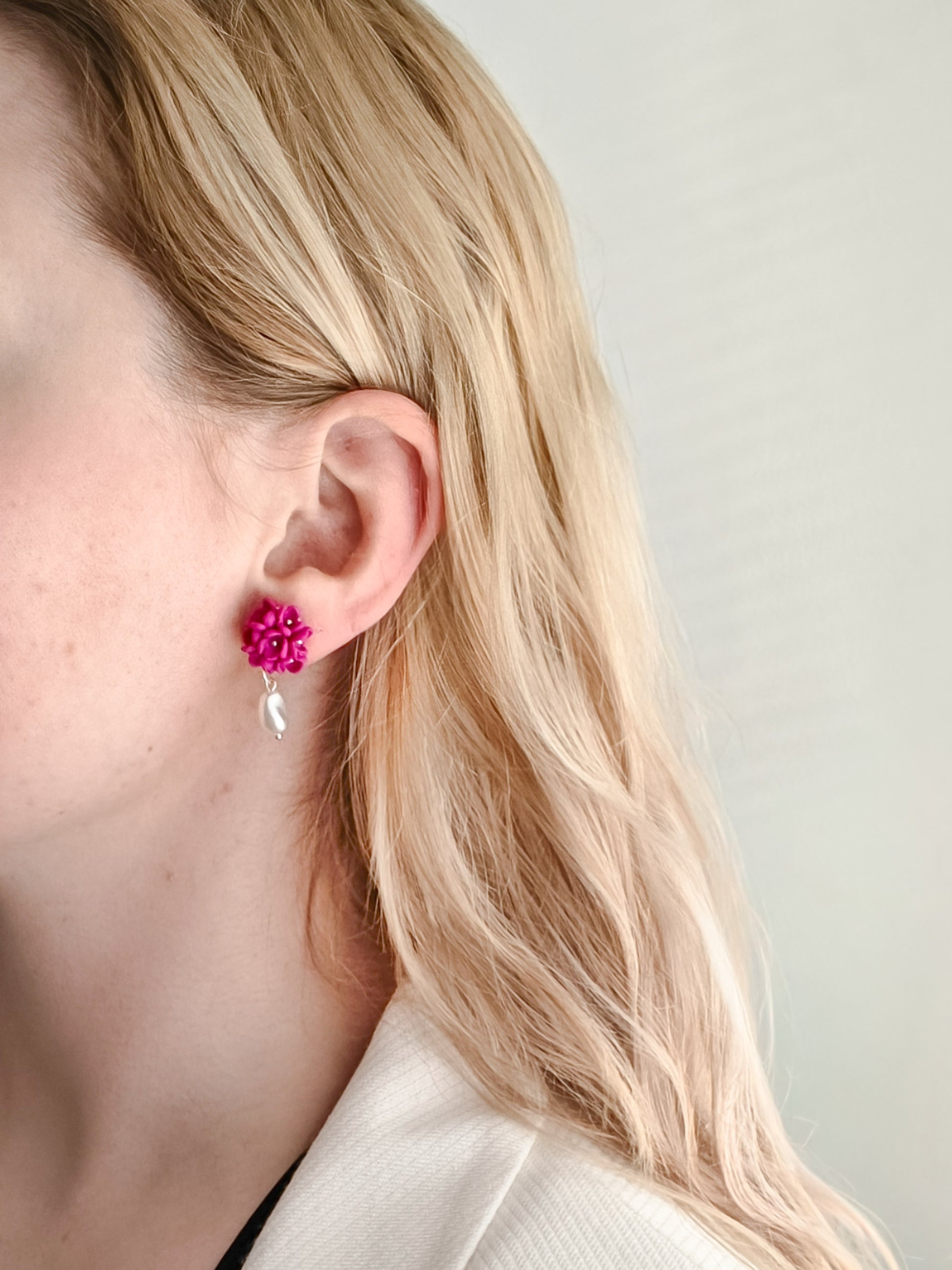 Hydrangeat ovat napeilla kiinnitettävät yksityiskohtaiset ja tyylikkäät korvakorut. napeilla kiinnitettävä kaunis korvakoru. Korussa on polymeerimassasta valmistettu Hortensia, josta roikkuu akryylihelmi. Nämä ovat hyvin kevyet käyttää pitkänkin päivän ajan.