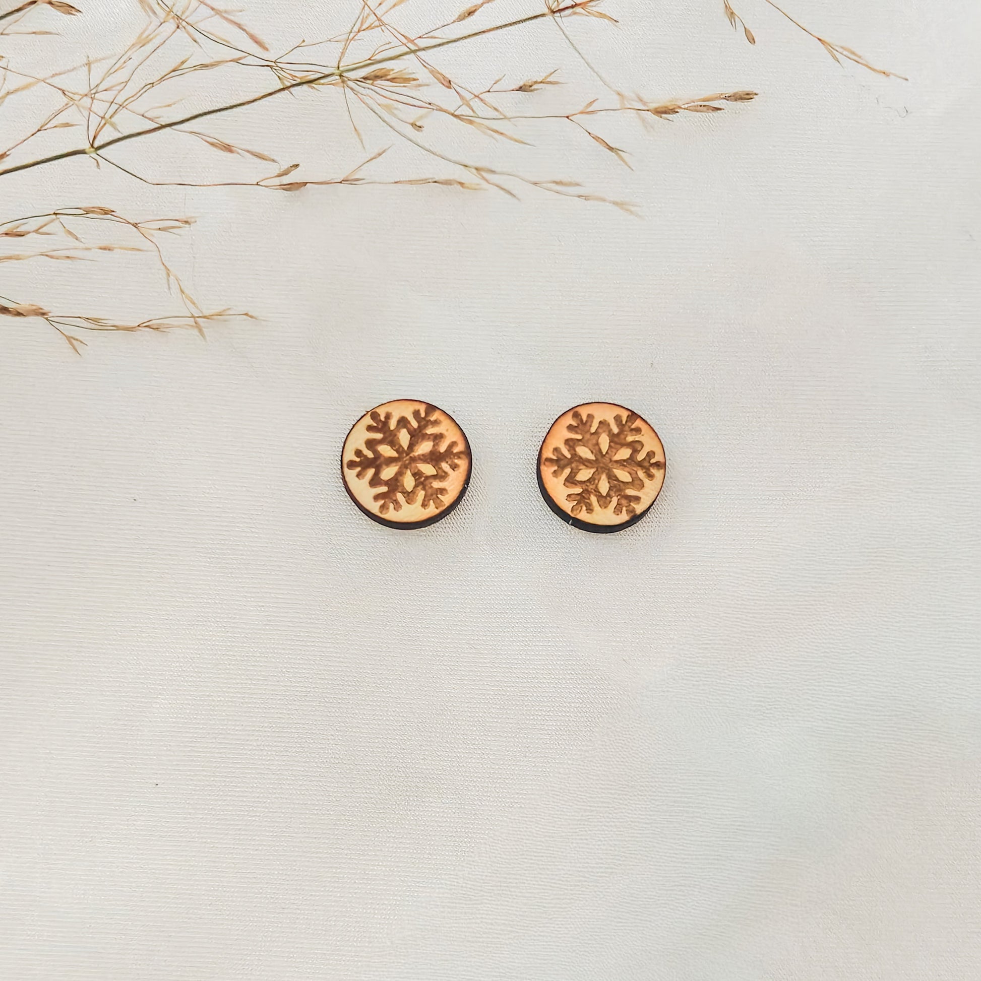 Puusta valmistetut suloiset pienet lumihiutaleet. Nämä kauniit korvakorut ovat 100% käsintehtyjä, jokainen pari on valmistettu yksilöllisesti huolella ja rakkaudella.
