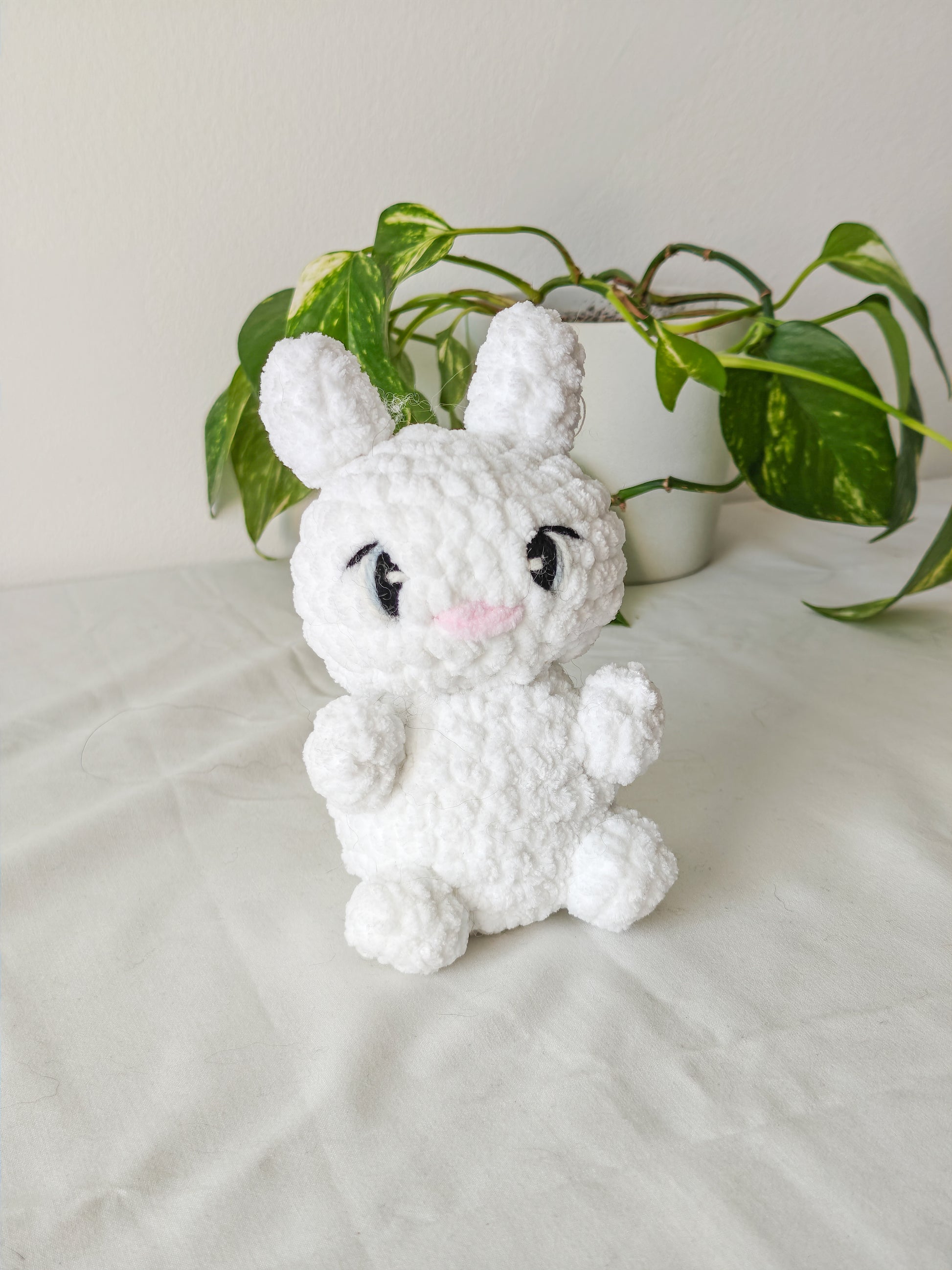 Käsintehty söpö pieni valkoinen pupu. Valmistettu ihanan pehmeästä ja pörröisestä langasta. 100% mikropolyesteri.
