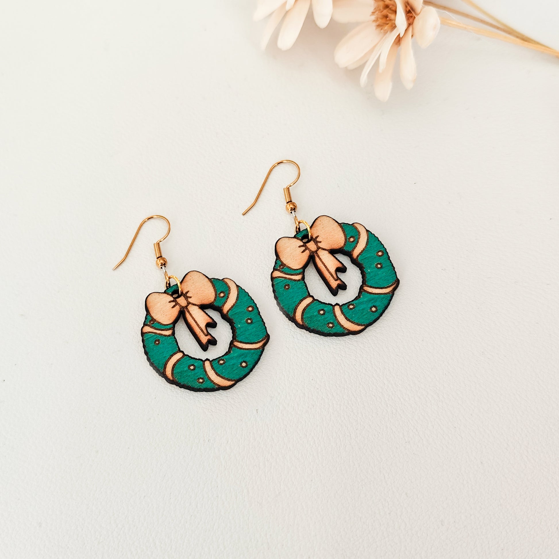 Puusta valmistetut roikkuvat kranssi korvakorut. Nämä kauniit korvakorut ovat 100% käsintehtyjä, jokainen pari on valmistettu yksilöllisesti huolella ja rakkaudella.