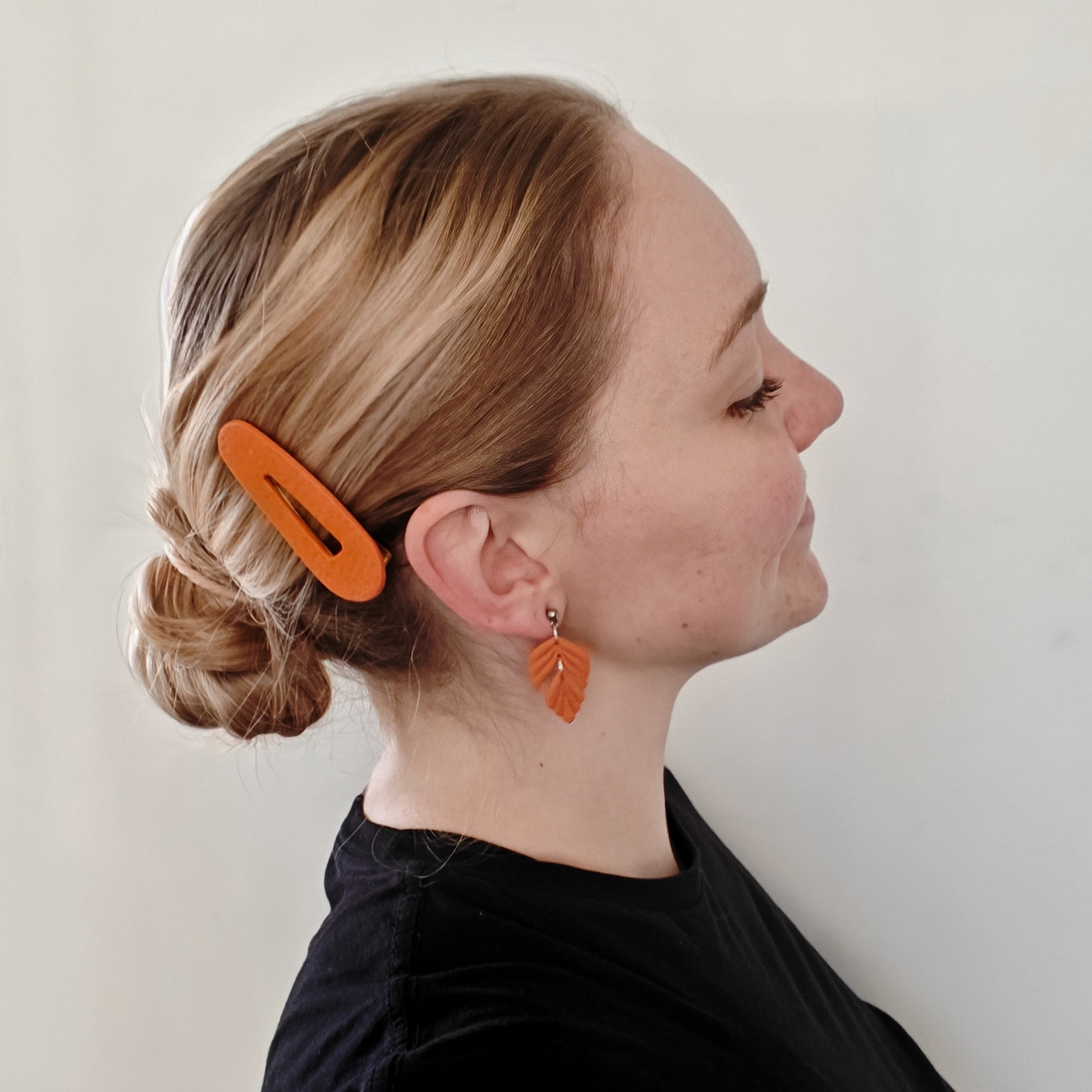 Polymeerisavesta valmistettu ruskea hiuspinni. Pitää paksunkin tukan hyvin kiinni.