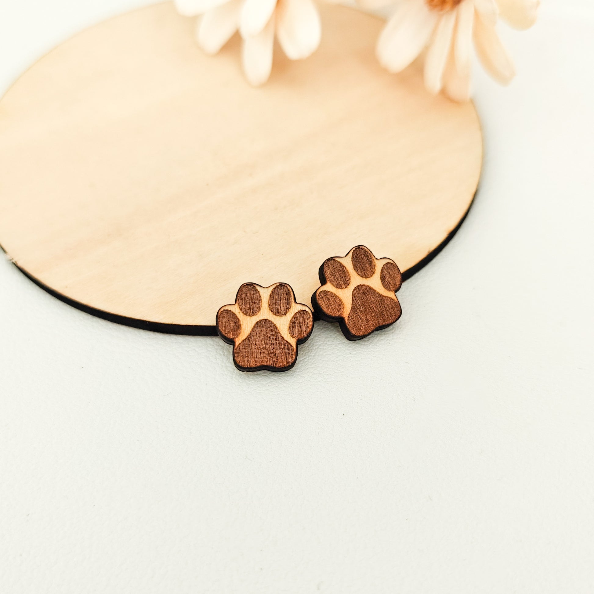 Puusta valmistetut tassu nappikorut. Nämä kauniit korvakorut ovat 100% käsintehtyjä, jokainen pari on valmistettu yksilöllisesti huolella ja rakkaudella.