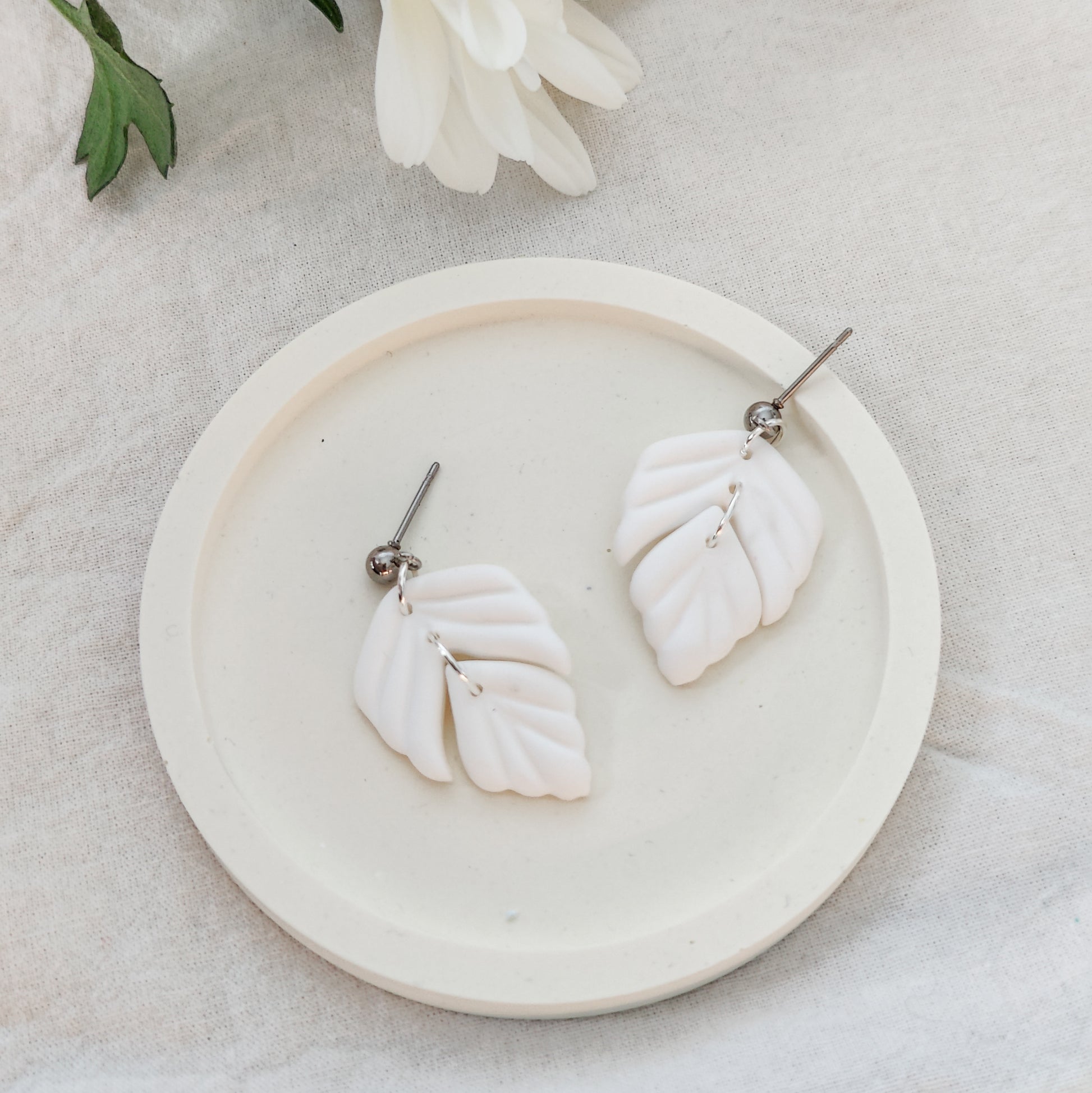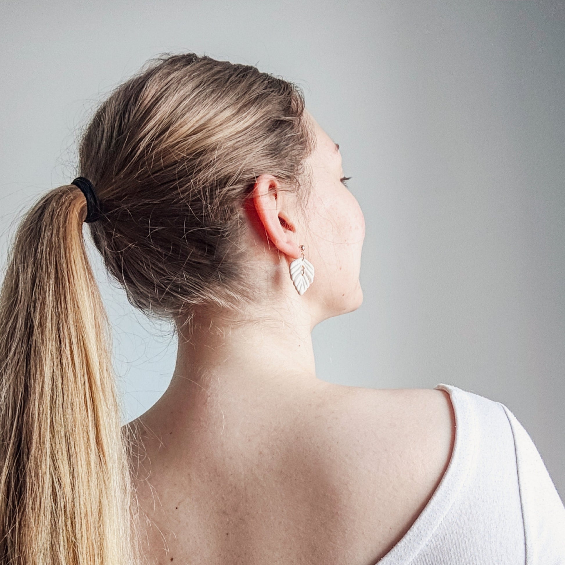 Valkoinen Peippi on napilla kiinnitettävä kaunis korvakoru. Nämä sopivat hyvin niin arkeen kuin juhlaan.